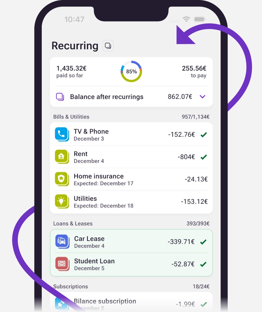 Stay on top of your bills and subscriptions, so you’re always prepared for the month ahead.