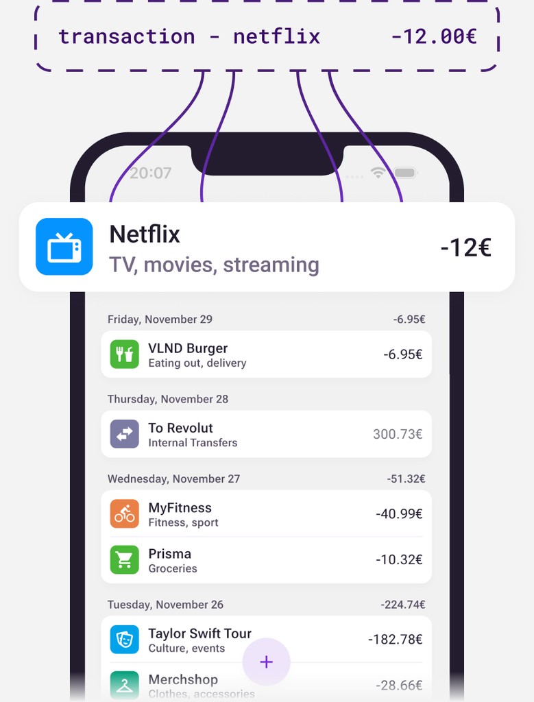 Understand your spending effortlessly with AI categorisation that learns from you.